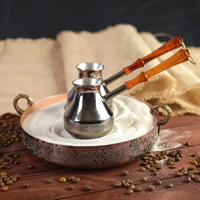 - Качественные материалы: изготовленная из меди с удобной деревянной ручкой, эта турка обеспечивает комфорт при использовании и отлично сохраняет тепло, позволяя наслаждаться горячим кофе дольше.