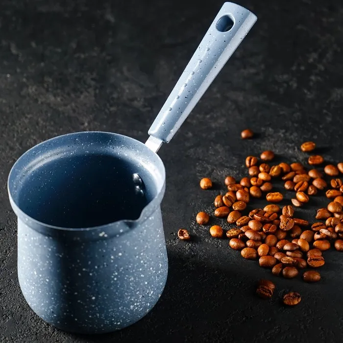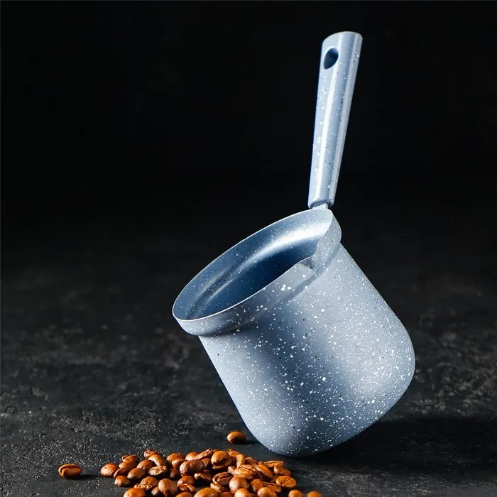 Турка Доляна «Мрамор грэй», 450 мл, d=9 см, 20×9×14 см, пластиковая ручка, антипригарное покрытие, индукция, серая — Характеристики