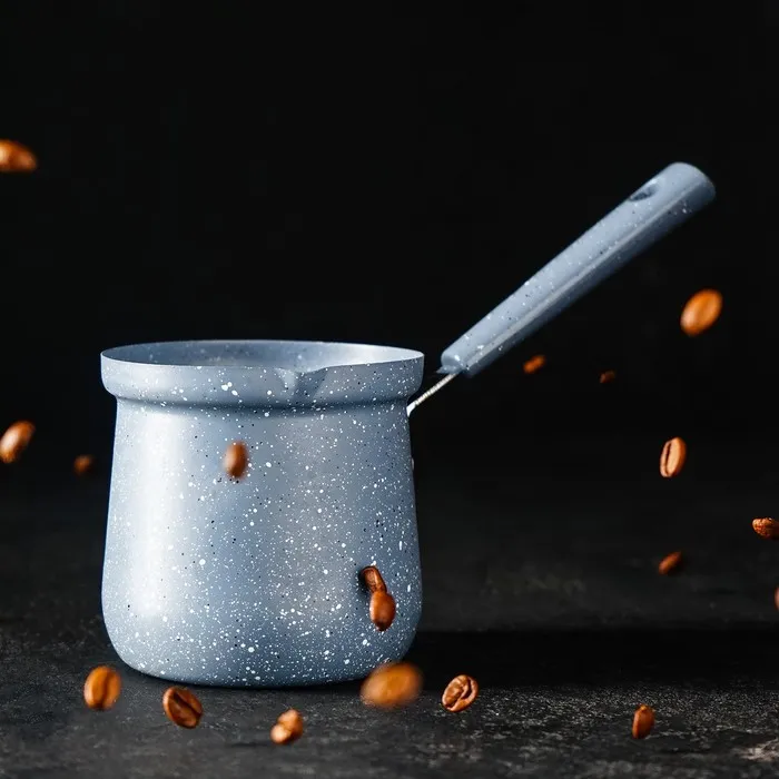 Эта турка идеально подходит для ценителей кофе, стремящихся к качеству и удобству. Объём в 450 мл позволяет готовить кофе для всей семьи, а стильный серый цвет добавляет элегантности в интерьер.