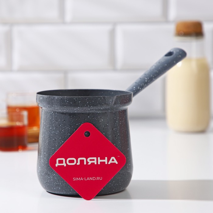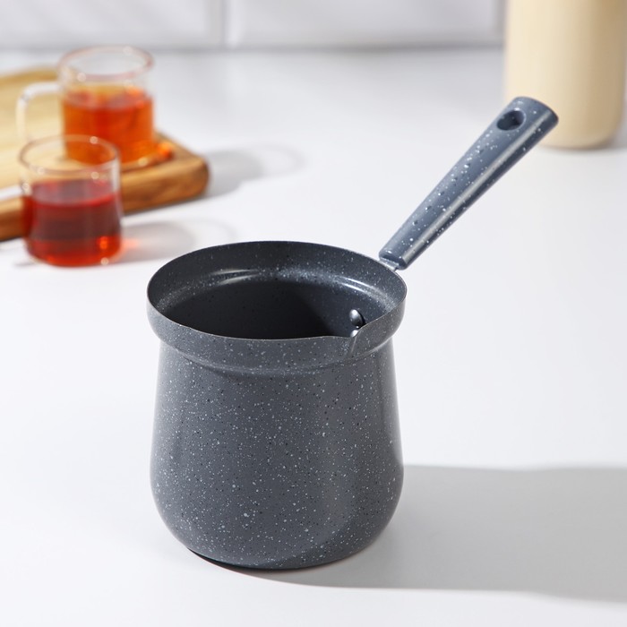 Турка Доляна «Мрамор грэй», 600 мл, d=10 см, 20.5×10×14 см, пластиковая ручка, антипригарное покрытие, индукция, серая — Характеристики