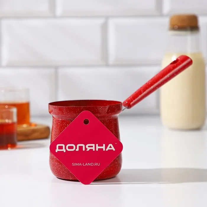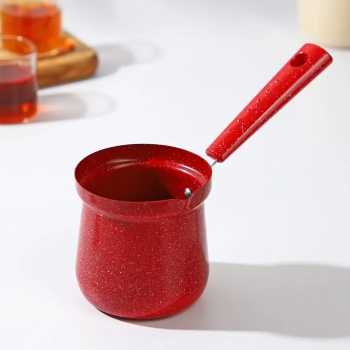 Турка Доляна «Мрамор рэд», 400 мл, d=8 см, пластиковая ручка, антипригарное покрытие, индукция, красная — Характеристики