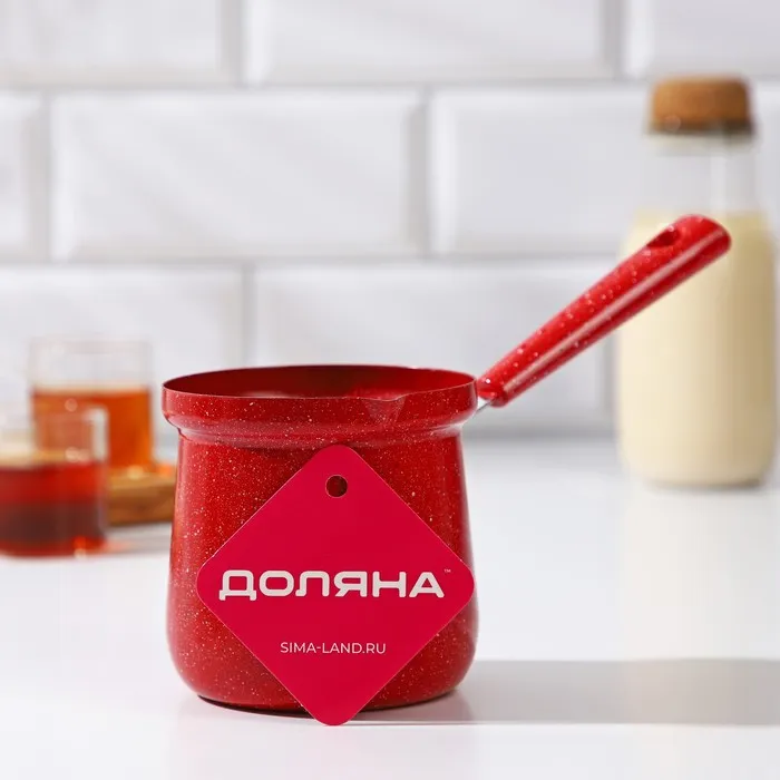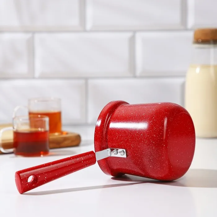 Турка Доляна «Мрамор рэд», 500 мл, d=9 см, 19.5×9×14 см, пластиковая ручка, антипригарное покрытие, индукция, красная — Характеристики