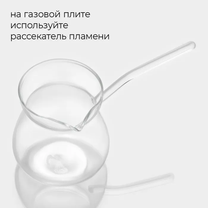 Стеклянная турка объёмом 450 мл сочетает в себе простоту и универсальность, подходя для разных типов плит и облегчая процесс приготовления напитка.