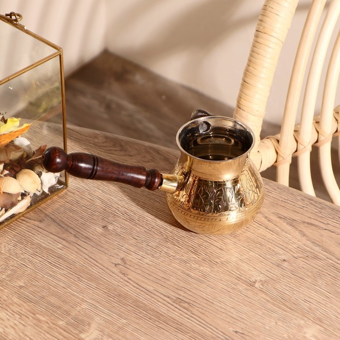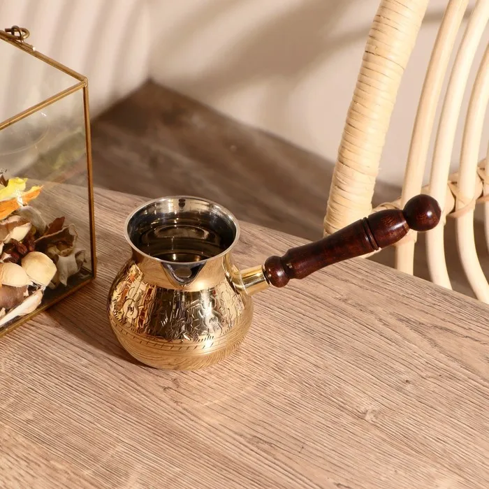 Посуда из латуни хорошо держит тепло и обеспечивает равномерный нагрев, помогая кофе раскрыться полностью и передать весь его вкусовой букет.