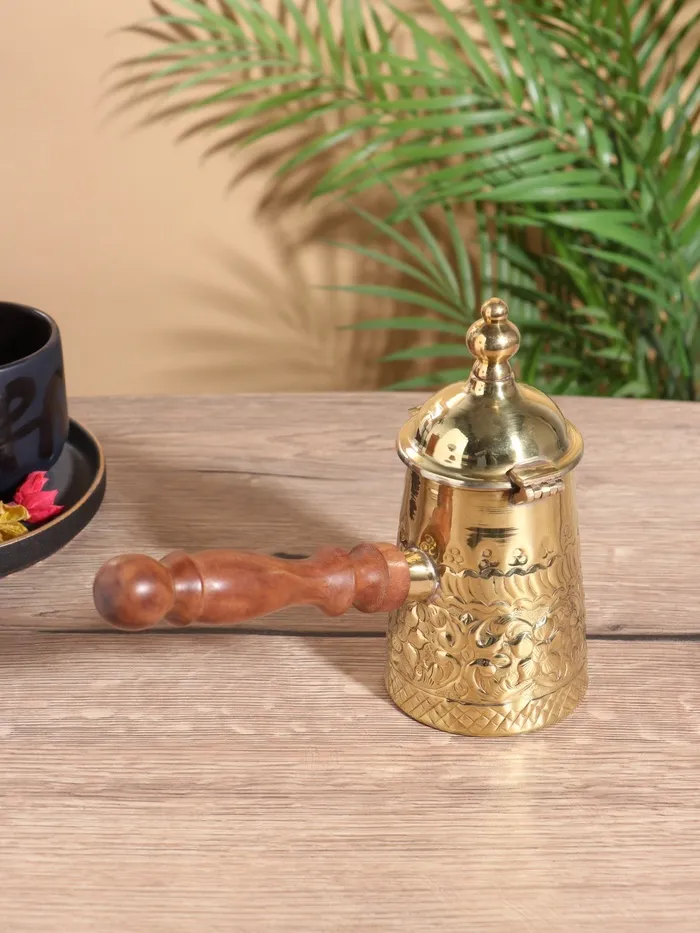 Турка "Золотые волны" латунь, с крышкой и деревянной ручкой 250 мл — Характеристики