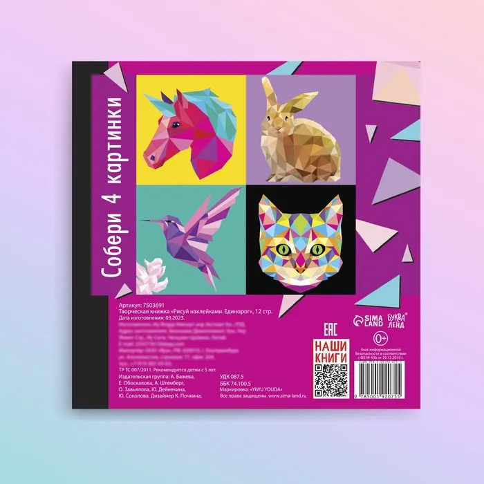 Творческая книжка «Рисуй наклейками. Единорог», 12 стр., 4 картинки, 150 наклеек — Характеристики
