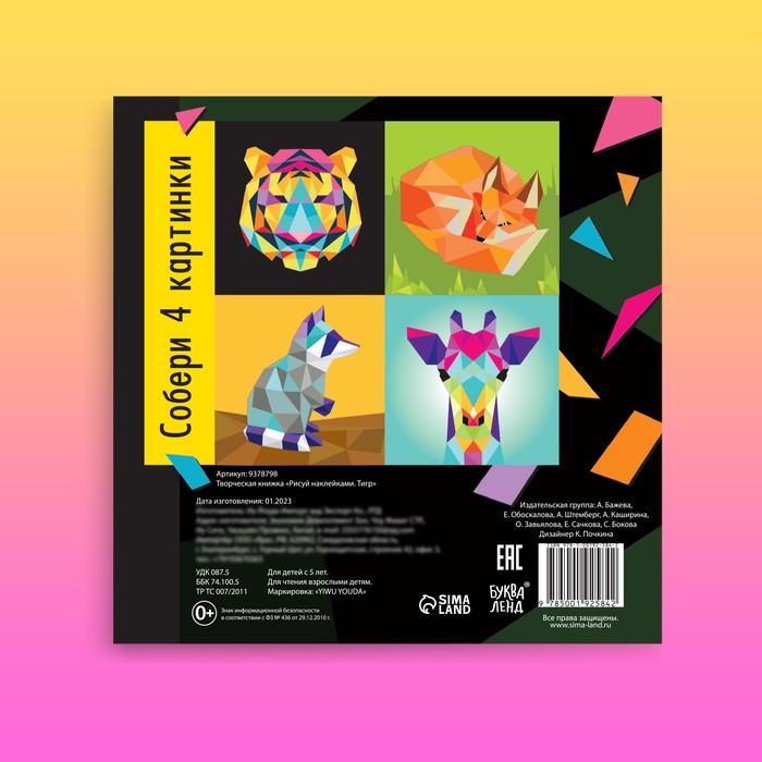 Творческая книжка «Рисуй наклейками. Тигр», 12 стр., 4 картинки, 170 наклеек — Характеристики