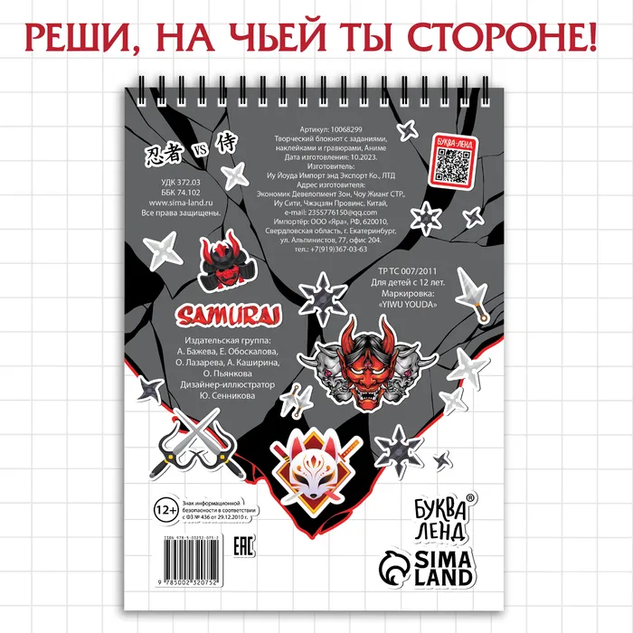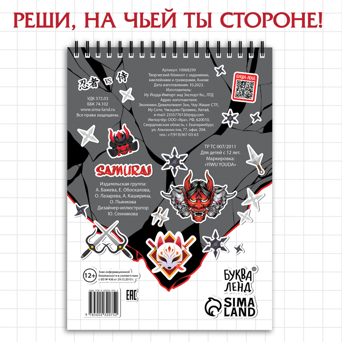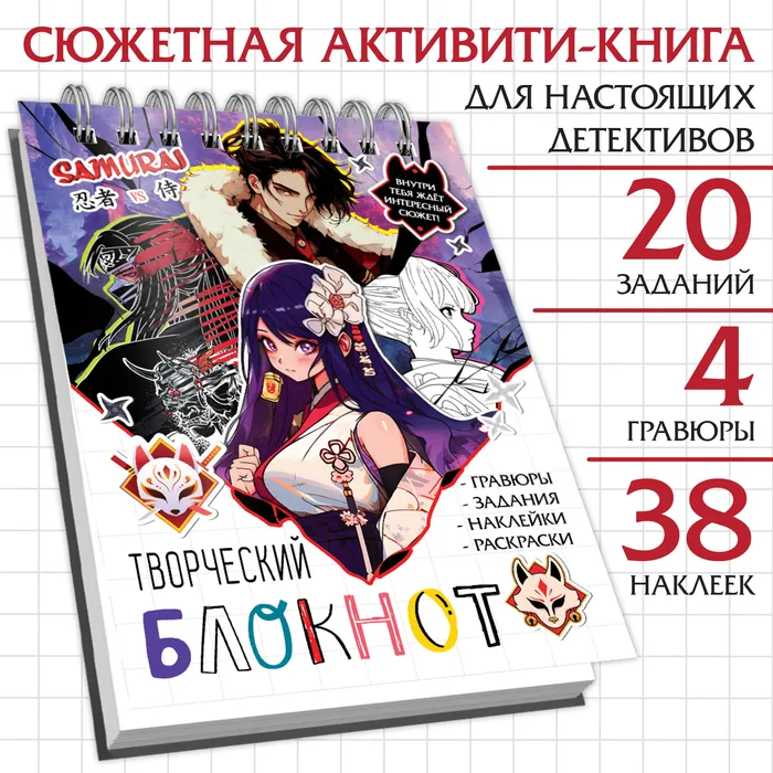 Творческий блокнот — это не просто набор бумаги и карандашей, это увлекательное приключение в мир загадок и творчества. Стань настоящим детективом и разгадай причину войны между ниндзя и самураями, расшифровав древние письмена.