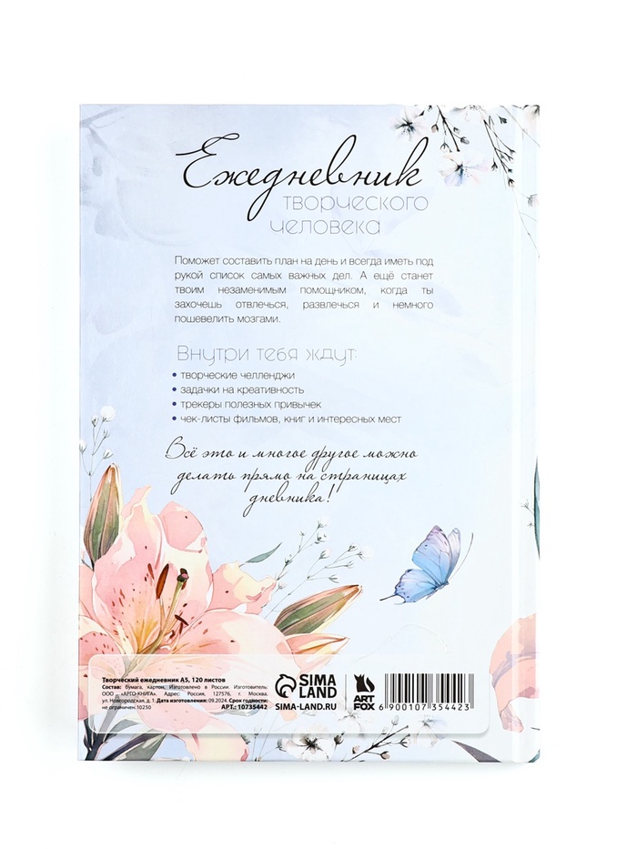 Творческий ежедневник, твердая обложка А5, 120 л «Время творить чудеса» — Характеристики