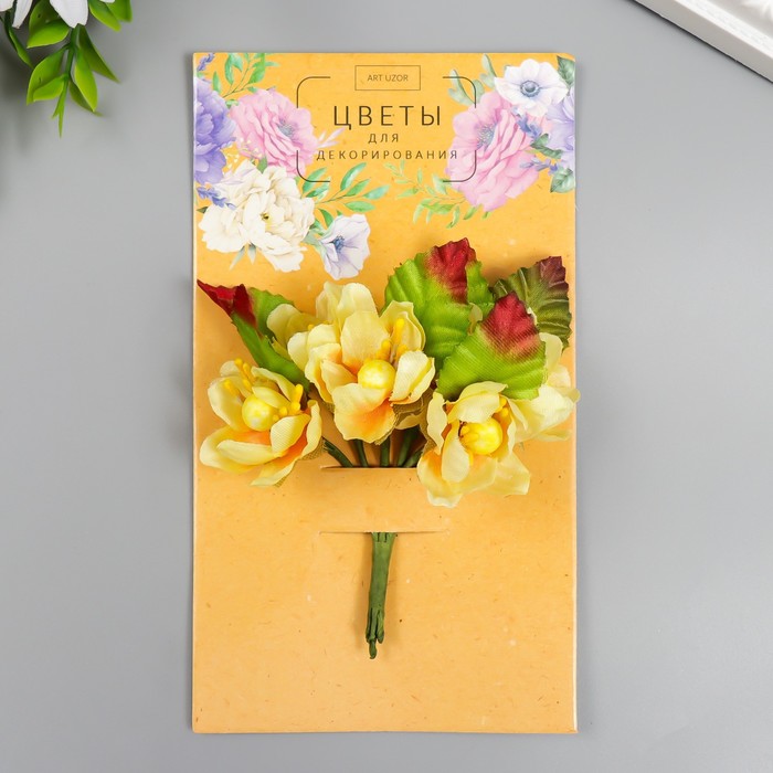 Цветы для декорирования «Циния», 1 букет=6 цветов, 9 см, жёлтый