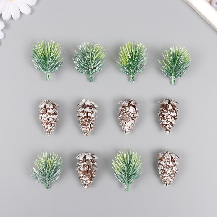 Декор для творчества «Еловые веточки и шишки», набор 12 шт., 4×2×2; 4.5×3×3 см