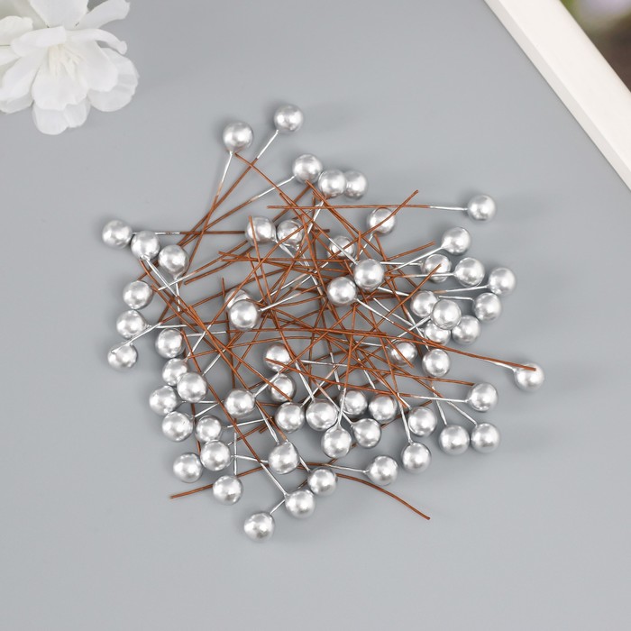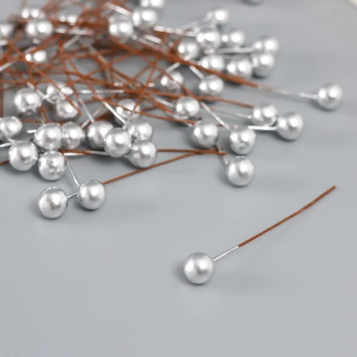 Тычинки для цветов «Шарик серебро», d=0.8 см, 6×0.8×0.8 см