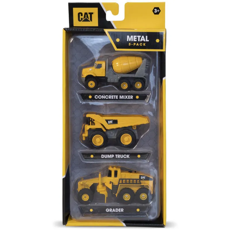 Металлические строительные машины CAT идеально подходят для веселых игр как дома, так и на улице. В комплект входят цементовоз, самосвал и грейдер. Эти игрушки помогут детям развивать воображение и навыки координации.