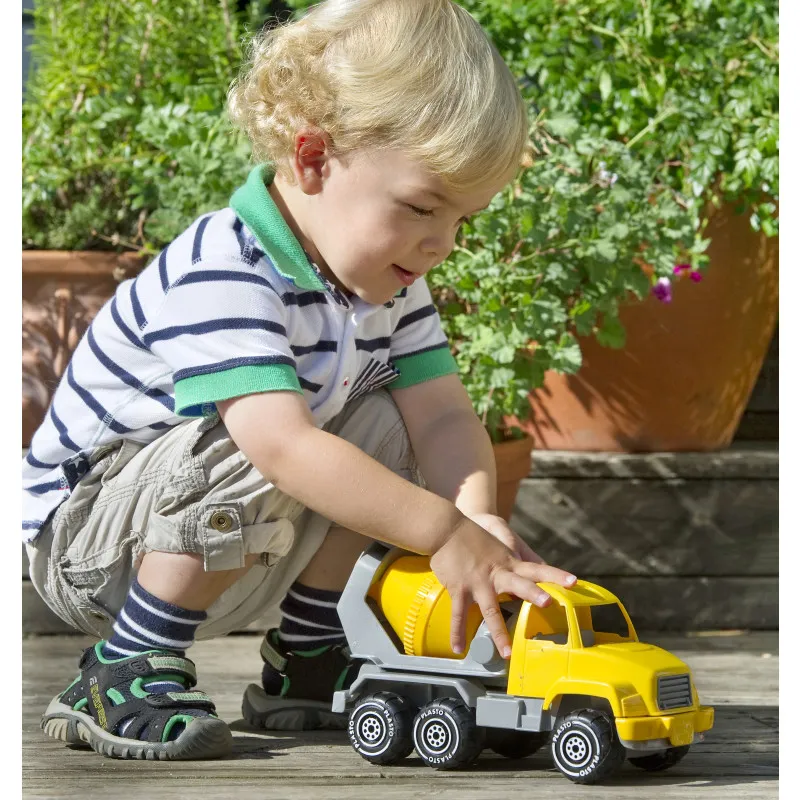 Трехкомпонентный и ярко-желтый набор строительной техники Plasto принесет больше радости в летние игры. В комплекте вы найдете грузовик, бетономешалку и мастерок. Длина каждого транспортного средства — 26 см.