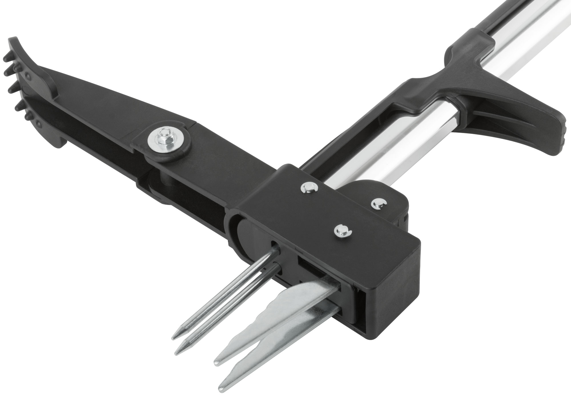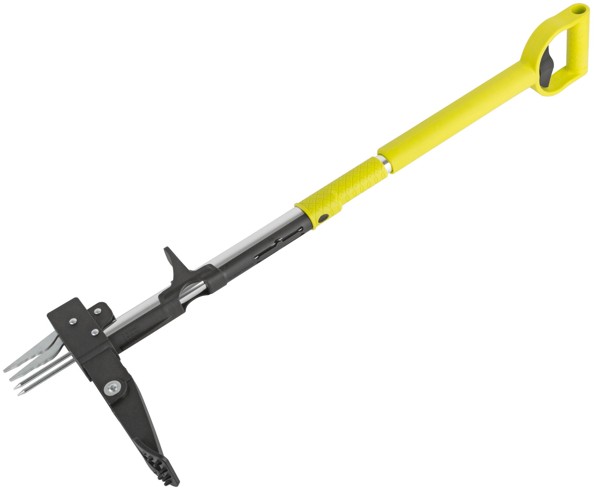 Инструмент оснащен стальными лезвиями, которые легко проникают в грунт, а телескопическая ручка длиной от 990 до 1170 мм позволяет подстроить инструмент под ваш рост для комфортной работы. D-образная форма ручки обеспечивает удобный хват.