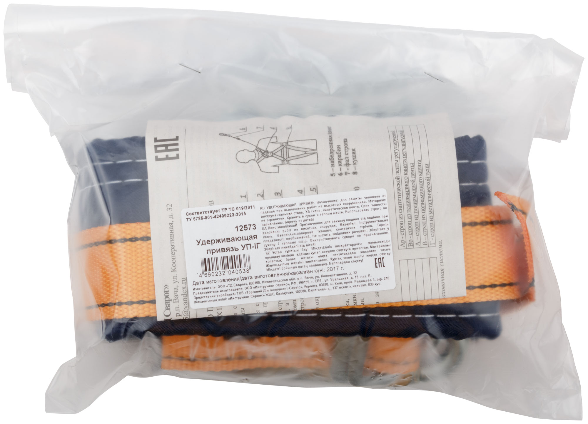 Привязь имеет две точки крепления, что обеспечивает дополнительную безопасность и стабильность при работе. Соответствует стандарту ГОСТ Р ЕН 358-2008, подтверждающему её высокое качество.
