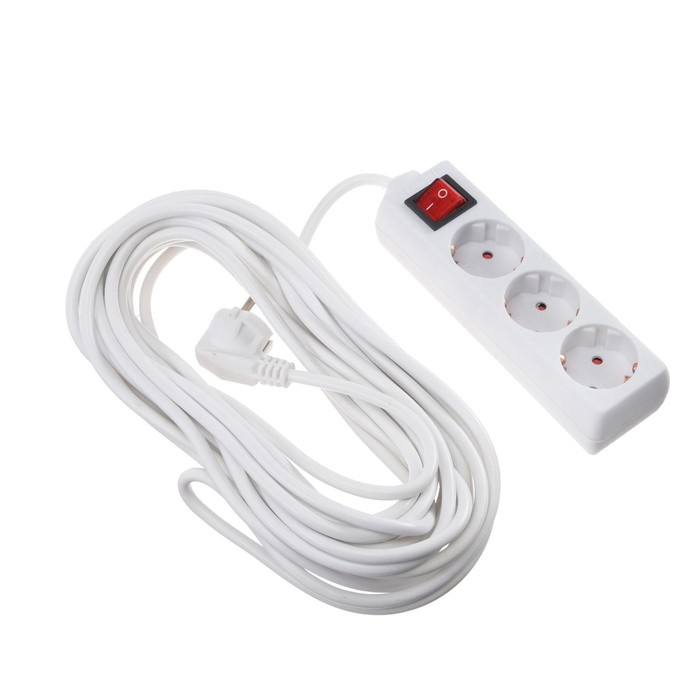 Удлинитель Luazon Lighting, 3 розетки, 10 м, 6 А, 1300 Вт, 3×0.75 мм2, с заземлением, с выключателем, белый — Характеристики