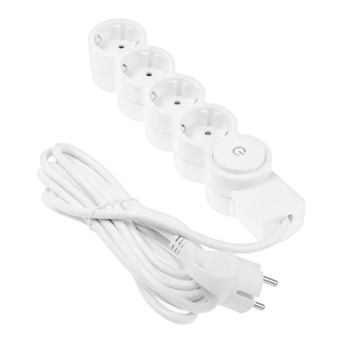 Удлинитель Duwi, 4 розетки, 3 м, 10 А, 2200 Вт, ПВС 3х0.75 мм2, с з/к, со шторками, белый