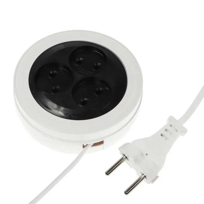 Удлинитель Luazon Lighting, 3 розетки, 3 м, 10 А, 2200 Вт, 2х0.75 мм2, 3хUSB, с выкл., Б