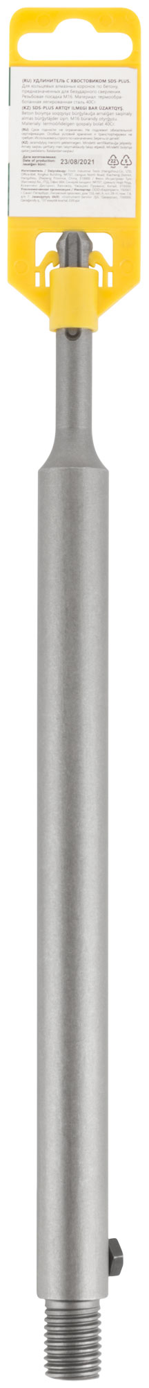 Удлинитель изготовлен из легированной инструментальной стали с добавлением хрома, что обеспечивает его долговечность и устойчивость к износу. Резьбовая посадка M16 позволяет надежно фиксировать коронки, обеспечивая безударное сверление.