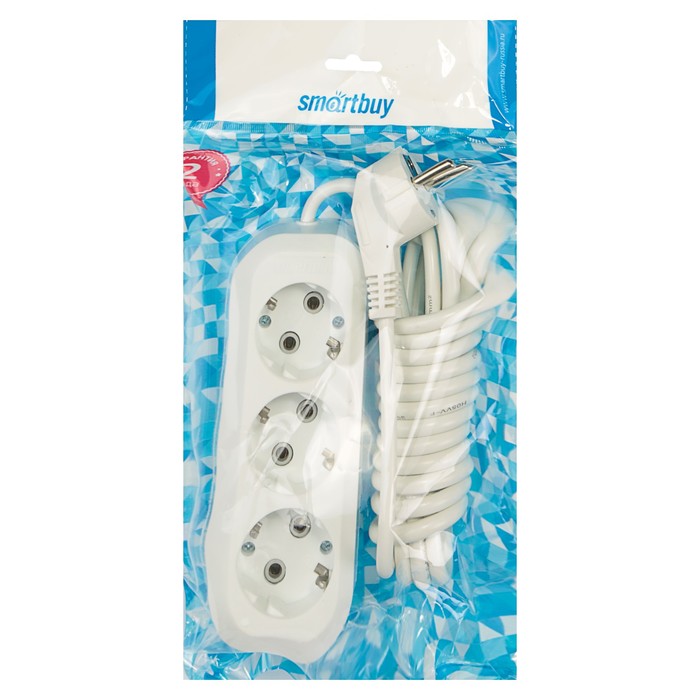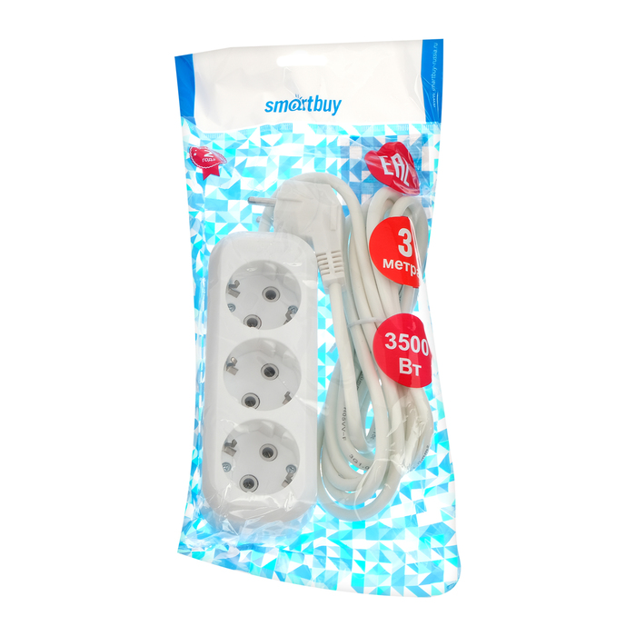 Удлинитель сетевой Smartbuy, 3 розетки, 3 м, 3500 Вт, ПВС 3×1 мм2, 16 А, с заземлением, белый — Характеристики