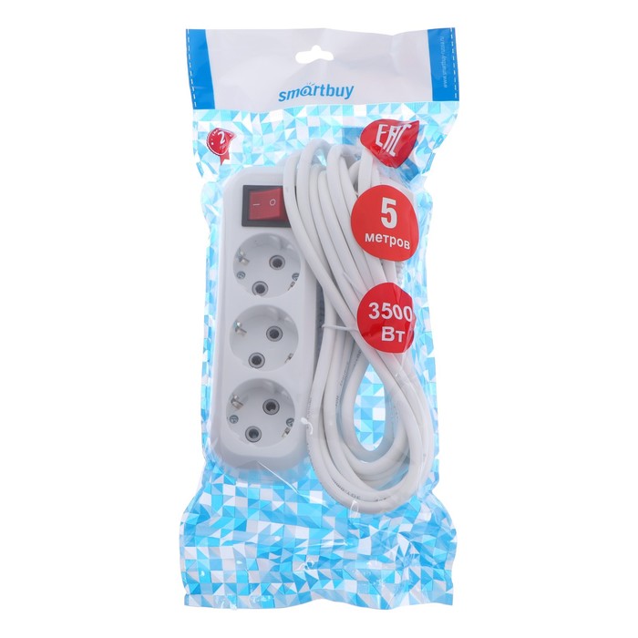 Удлинитель сетевой Smartbuy, 3 розетки, 5 м, 3500 Вт, ПВС 3×1 мм2, 2 USB-A USB-C, 2.1 А, с заземлением, с выключателем, белый — Характеристики