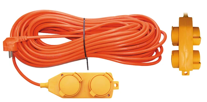 Его длина 20 метров позволяет свободно перемещаться по рабочей зоне, подключая инструменты даже на удалении от источника питания. Удлинитель выдерживает ток до 16 А, что подходит для мощных устройств.