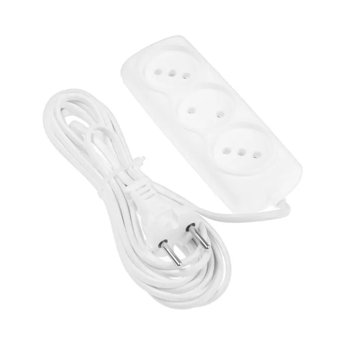 Удлинитель Luazon Lighting ECO, 3 розетки, 2.7 м, 10 А, 2200 Вт,ПВС 2х0.75 мм2,без з/к,белый