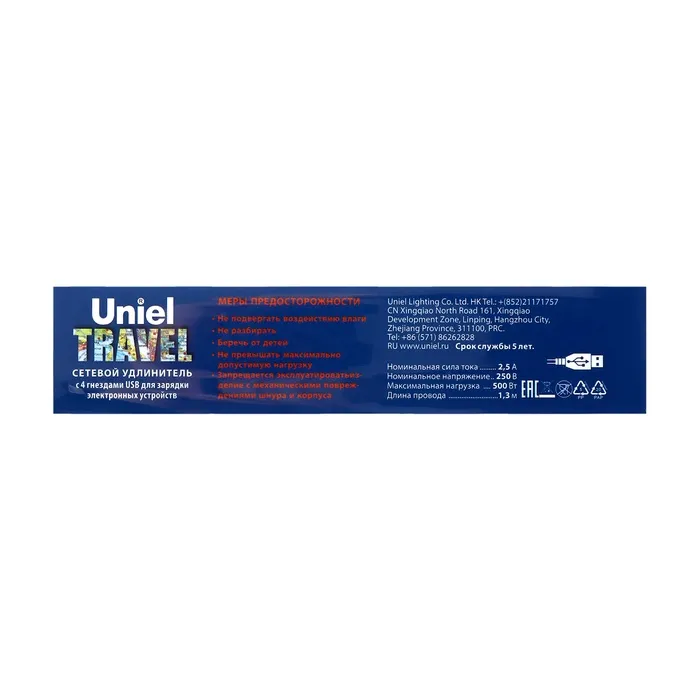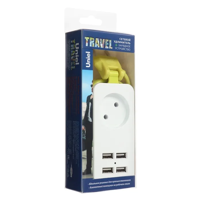 Удлинитель Uniel, 1 розетка, 1.3 м, без з/к, 4 USB (2.1 A) — Характеристики