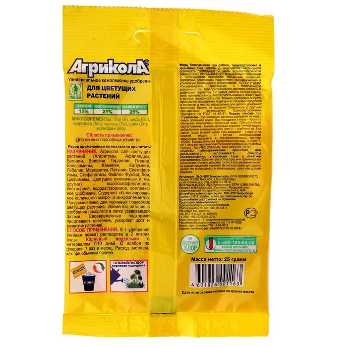 Удобрение Агрикола для цветущих растений 25 г — Характеристики