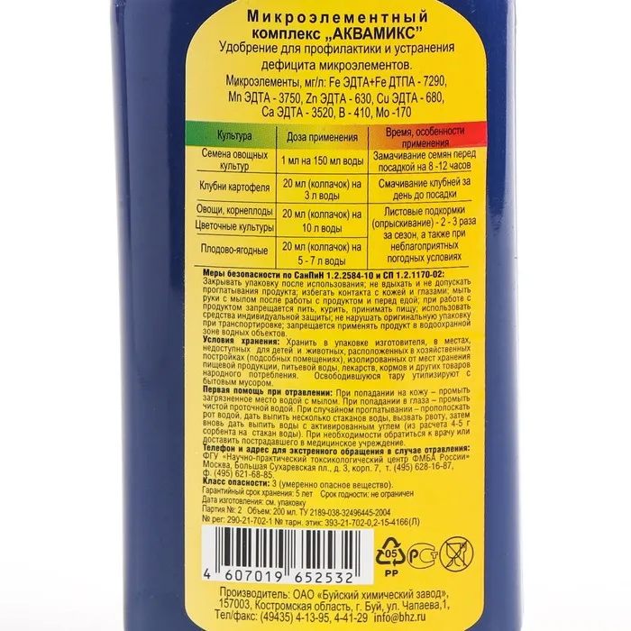 На практике садоводам затруднительно вносить микроэлементы отдельно. Внесение их в составе «Аквамикса» существенно упрощает этот процесс, а так как они содержатся в физиологически выверенных пропорциях, нет риска излишнего внесения.