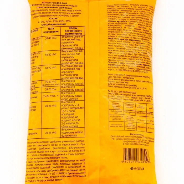 Удобрение Диаммофоска, БХЗ, 0,9 кг — Характеристики