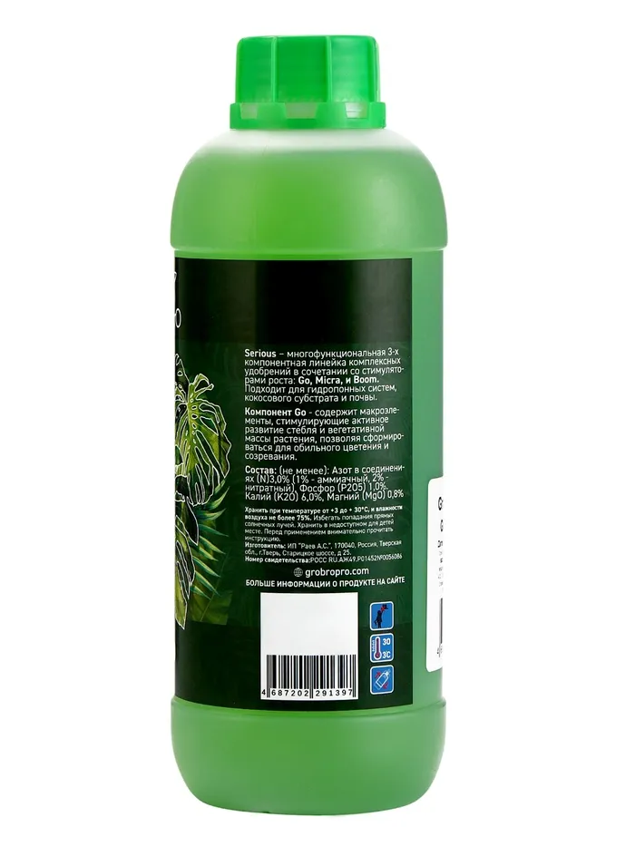 Удобрение для гидропоники GroBro Serious Go, объемом 1000 мл, – это универсальное решение для тех, кто стремится достичь высокого качества выращивания растений. Специально разработанный состав включает все необходимые макро- и микроэлементы, обеспечивающие полноценное питание растений в любой стадии их роста. Подходит для использования в системах гидропоники и обеспечивает идеальный баланс питательных веществ. Рекомендуется для овощных, зелёных и цветочных культур. Простое в применении и экономичное, это удобрение станет надежным помощником для профессионалов и любителей садоводства.