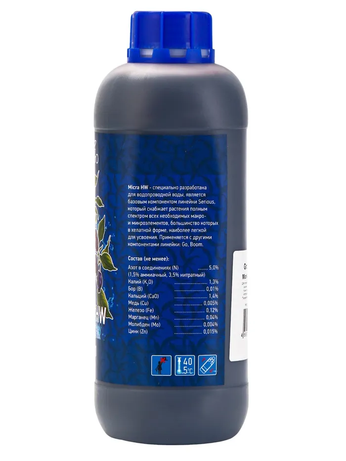 Выбирайте GroBro Serious Micra HW — удобрение, которое сочетает в себе эффективность, экономичность и простоту использования. Вы получите здоровые, крепкие растения и богатый урожай, не переплачивая за результат. Доверьтесь профессиональному решению, чтобы ваши растения росли на пике своих возможностей. Ваш успех начинается здесь!