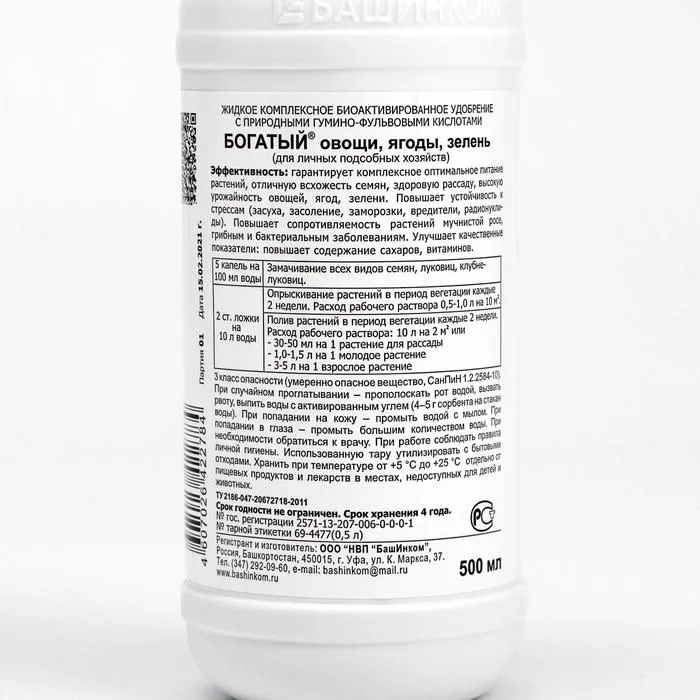 Удобрение для овощей, ягод, зелени Гуми-20 М Богатый, 0,5 л, — Характеристики