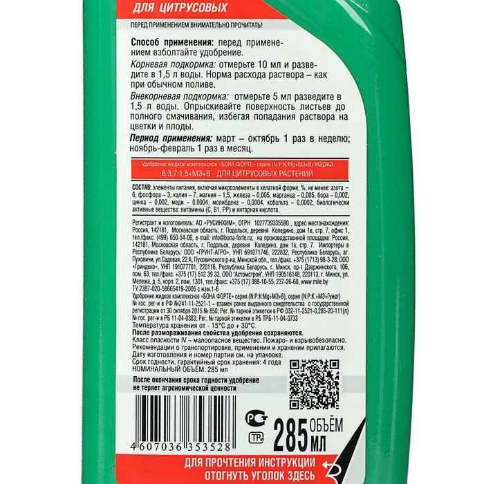 Удобрение для цитрусовых растений Bona Forte, флакон, 285 мл — Характеристики