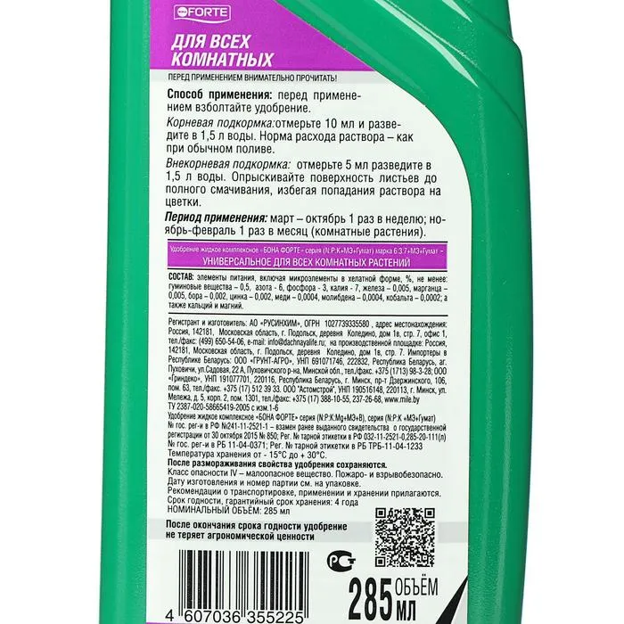 Удобрение для всех комнатных растений Bona Forte Здоровье универcальное, 285 мл — Характеристики