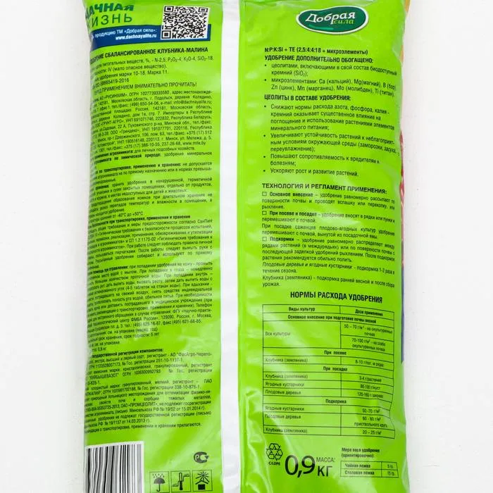 Удобрение обогащено цеолитами, содержащими биодоступный кремний.