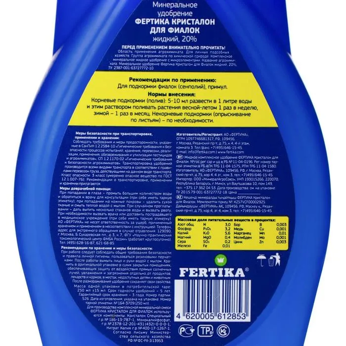 Удобрение Фертика Кристалон для фиалок, 250 мл — Характеристики