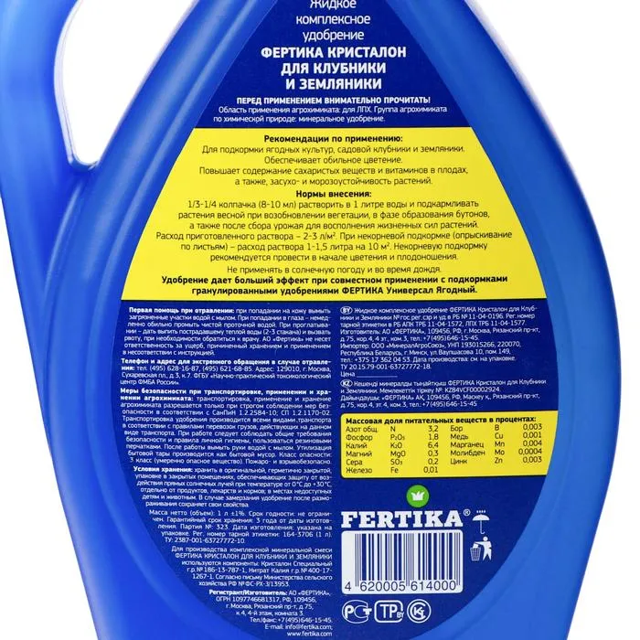 Удобрение Фертика Кристалон для клубники и земляники, 1 л — Характеристики
