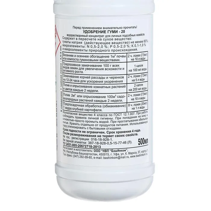 Удобрение Гуми-20 универсальное, 0,5 л — Характеристики