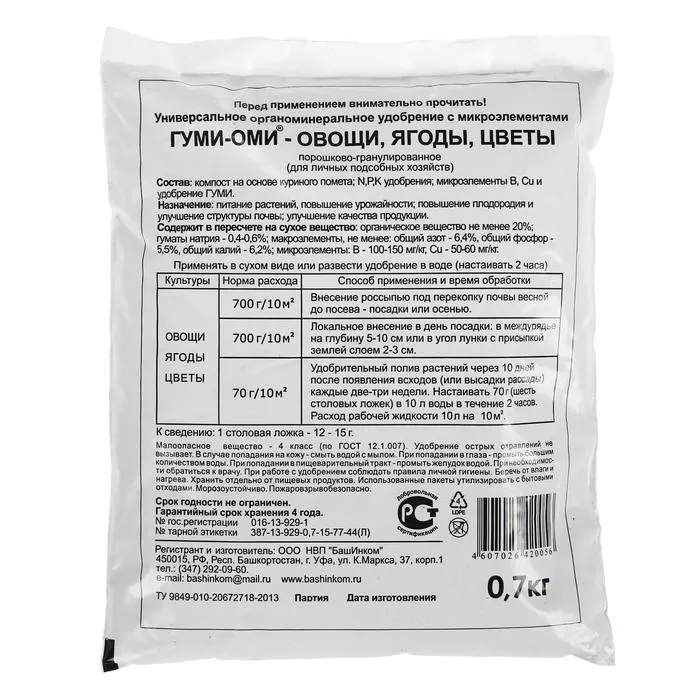 Удобрение Гуми-Оми Универсал для овощей, ягод, цветов 0,7 кг — Характеристики