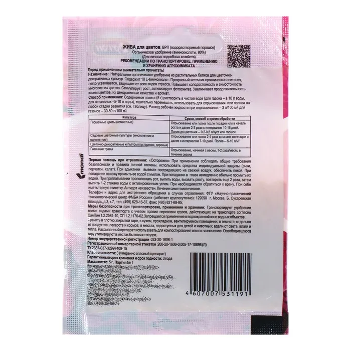 Назначение: натуральное органическое удобрение из растительных белков для цветочно-декоративных культур. Содержит 18 L-аминокислот.