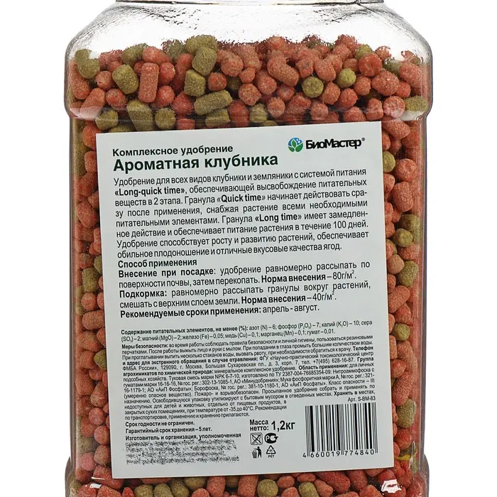 Комплексное удобрение для земляники, клубники. Удобрение с системой питания «Long-quick» обеспечивает высвобождение питательных веществ в 2 этапа. Гранула «Quick» начинает действовать сразу снабжая растения всеми необходимыми питательными элементами. Гранула «Long» медленно высвобождают питательные вещества в течение 100 дней. Удобрение обеспечивает рост и развитие сильных, здоровых растений, обильное плодоношение и формирование вкусных ягод.