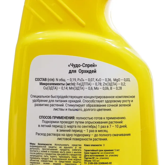 Удобрение комплексное жидкое "Чудо спрей" для Орхидей, 0,5 л — Характеристики