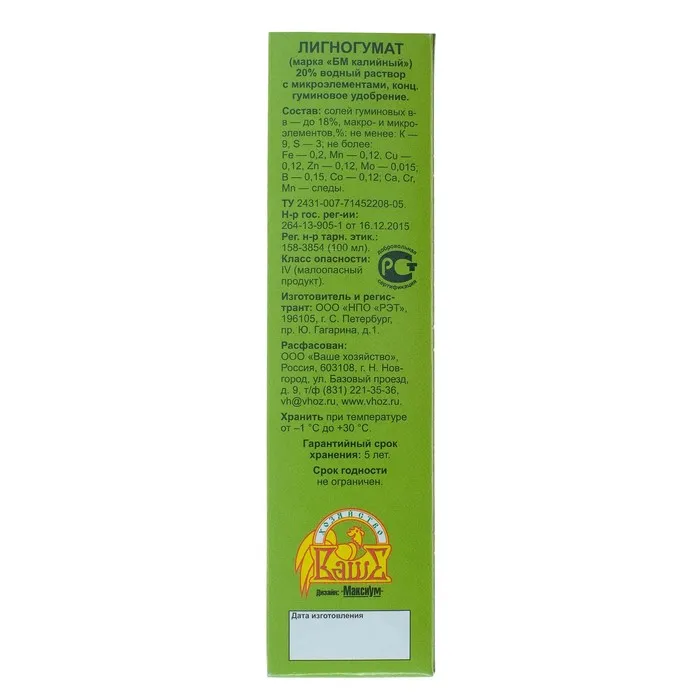 Лигногумат калийный -гуминовое удобрение для подкормки овощных, плодовых, ягодных и цветочно-декоративных культур. Увеличивает всхожесть и энергию прорастания семян, ускоряет рост корневой и надземной части растений, повышает урожайность, сохраняет плодородие почвы, снимает стресс у растений при заморозках и засухе, уменьшает дозы минеральных и органических удобрений.