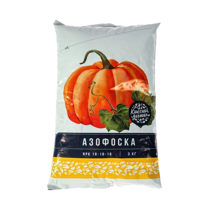 Азофоска — высокоэффективное полное минеральное удобрение, содержащее в усвояемой форме основные питательные элементы, необходимые для роста и развития растений - азот, фосфор, калий. Применяют для основного, допосевного и местного внесения в рядки при посеве, а также для подкормки растений.