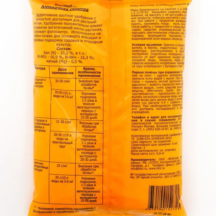 Эффективное азотное удобрение с полностью доступным для растений магнием. Рекомендуется для различных садовых, огородных и цветочно-декоративных культур в период от начала вегетации до периода их активного роста.