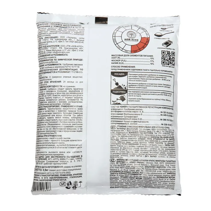 Удобрение минеральное Для клубники и земляники, 900 г — Характеристики