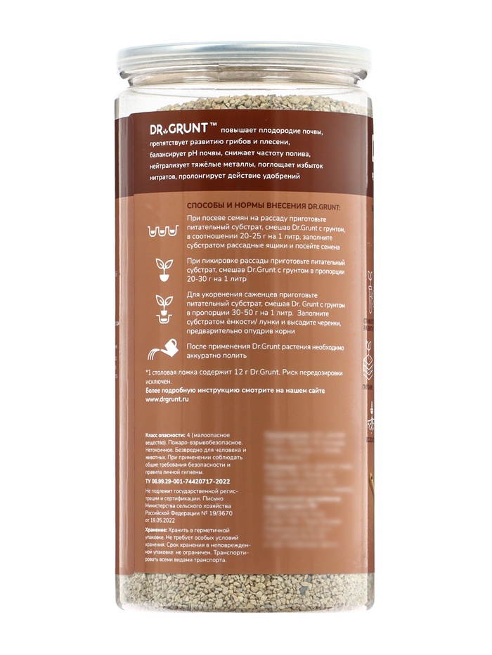Минеральное удобрение Dr.Grunt для рассады и саженцев, 700 г — это профессиональный объем специализированного питания. Состав закладывает основу для развития мощной корневой системы и крепкого стебля, определяя успех всего сезона.